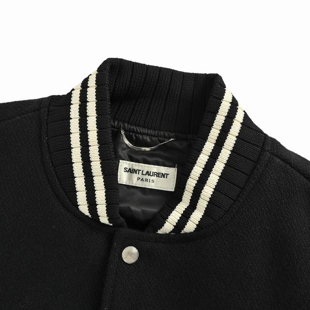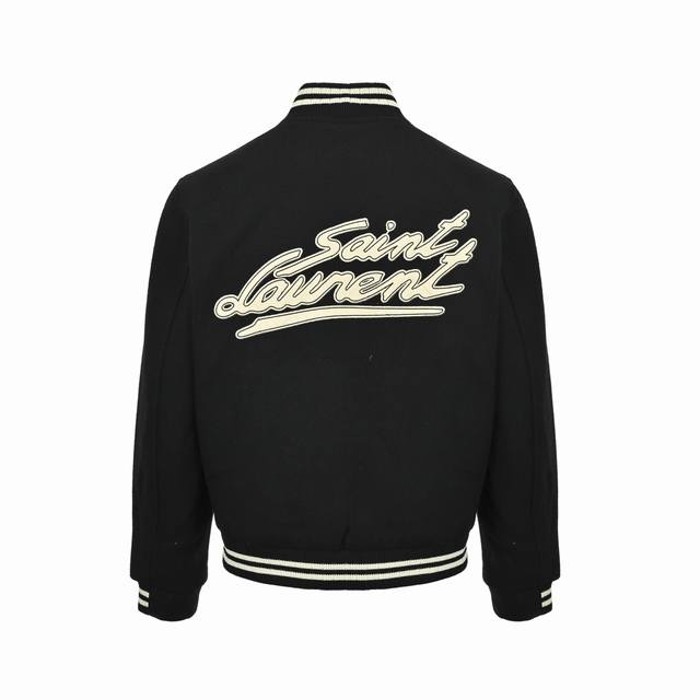 Saintlaurent genuine leather baseball jacket with back patch. . A favorite amon