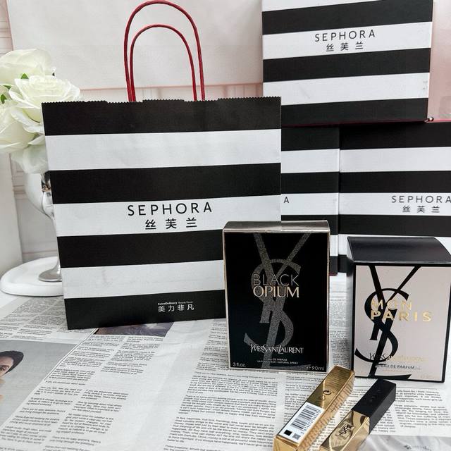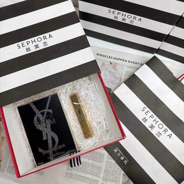 Sephora counter gift box Vietnamese version Ysl perfume lipstick series Sephora Qixi gift box is here~gift box handbag raffia packing box