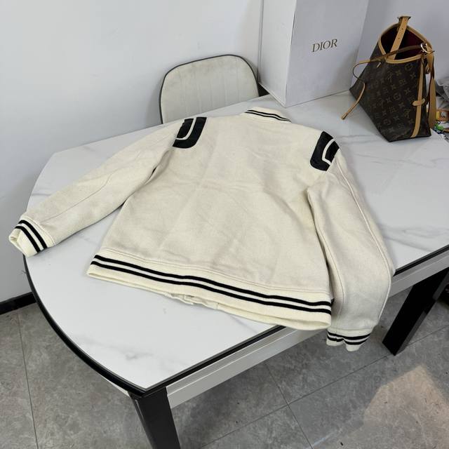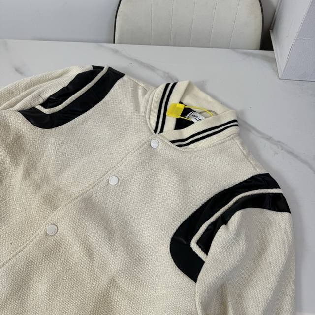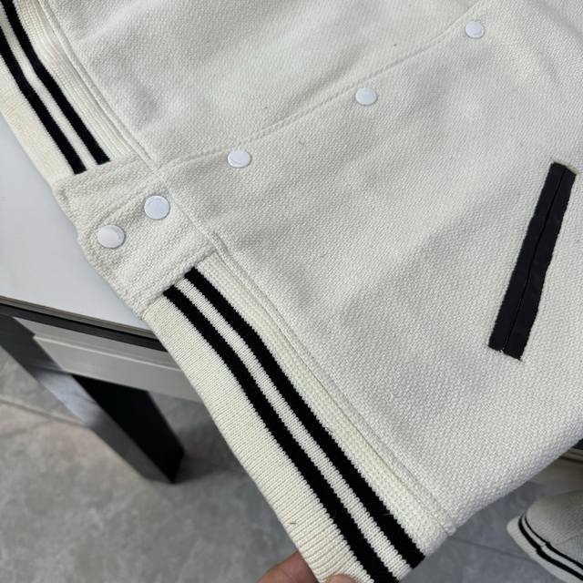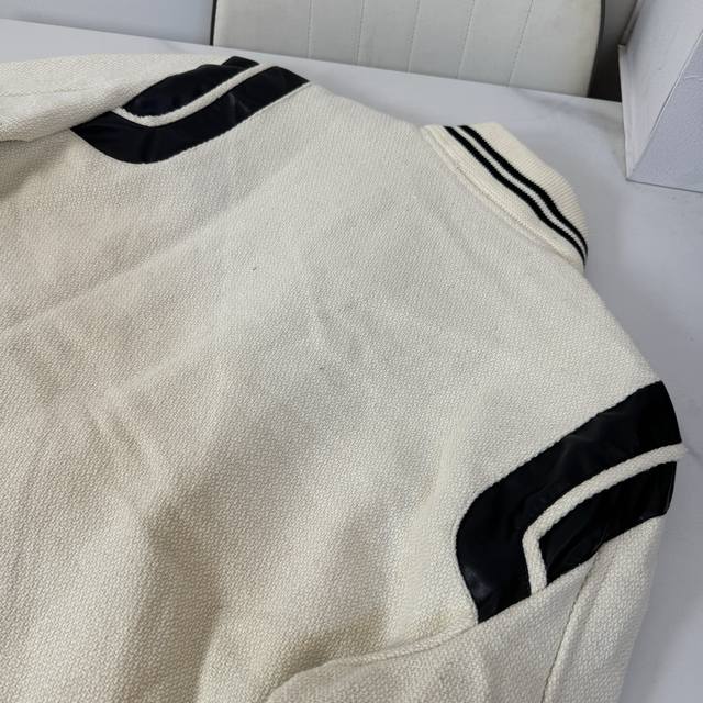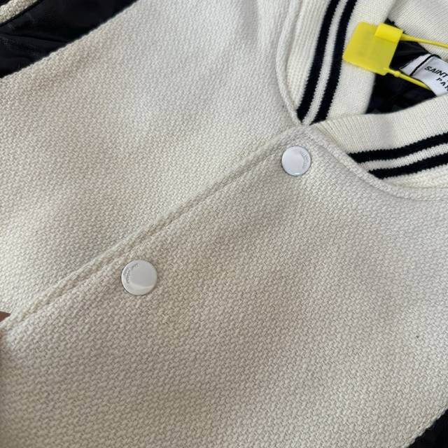Style No.: B28 Ddd High-quality version in stock, all sizes available. Saint Laurent Paris SLP classic patchwork black and white baseball collar jacket. Developed from the original 1:1, this is the highest quality version available online, taking 2 months to customize. Made of pure wool fabric, jacquard ribbed weave
