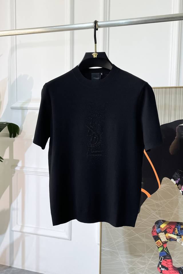 YSL - 2025 Autumn/Winter Short-Sleeve Sweater Collection! A must-have for casual and business wear, perfect for layering or wearing alone. Made from a premium fine mulberry silk blend, the fabric is delicate to the touch, comfortable against the skin, and doesn't irritate the skin. It has a flattering fit and provides warmth. The unique boutique logo design is a must-have for men! Sizes: M-3XL