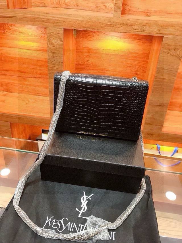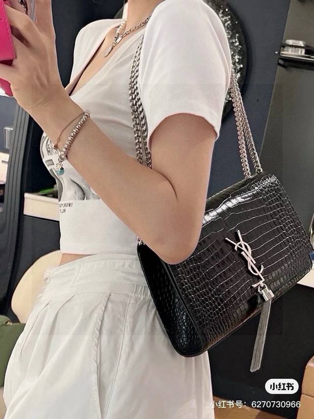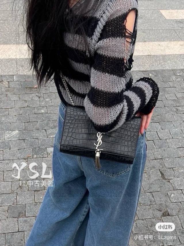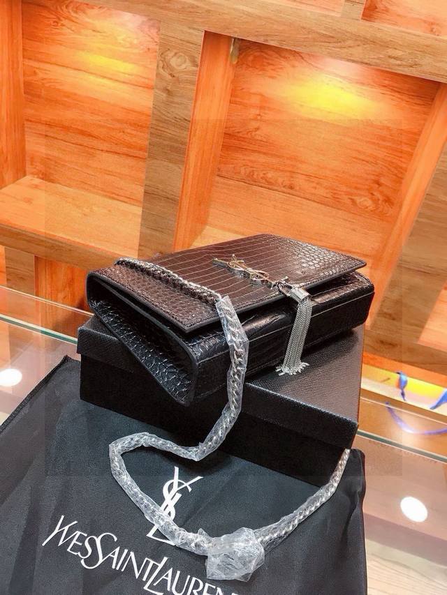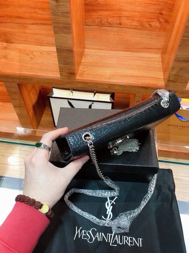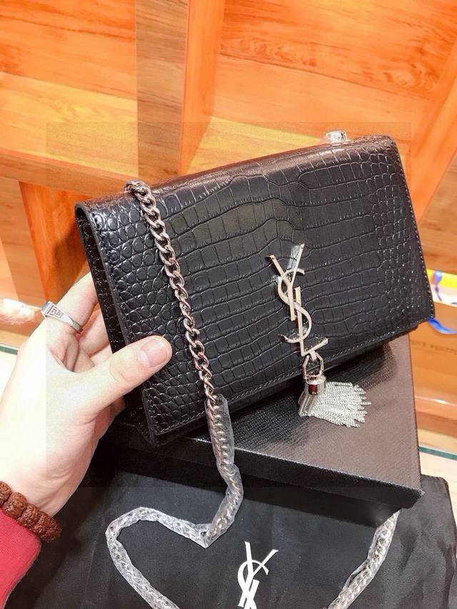 YSL Saint Laurent Crocodile Embossed Tassel Bag