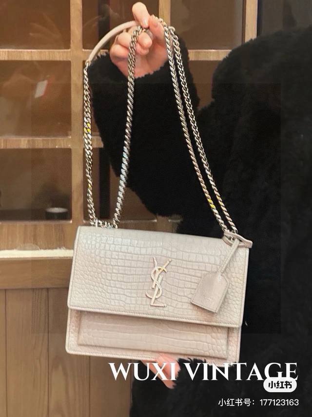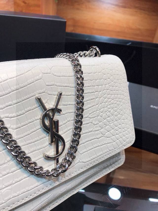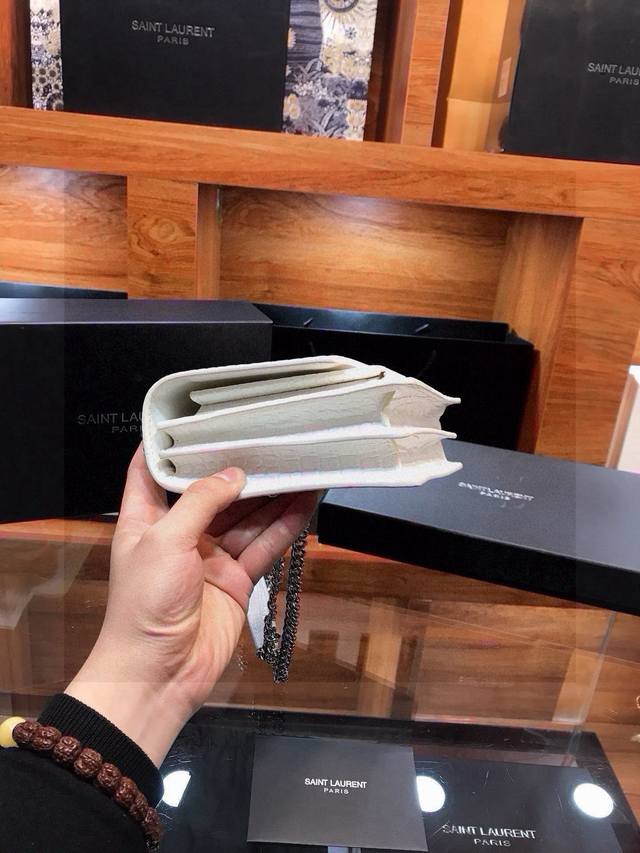 YSL Saint Laurent Crocodile-Embossed Chain Bag