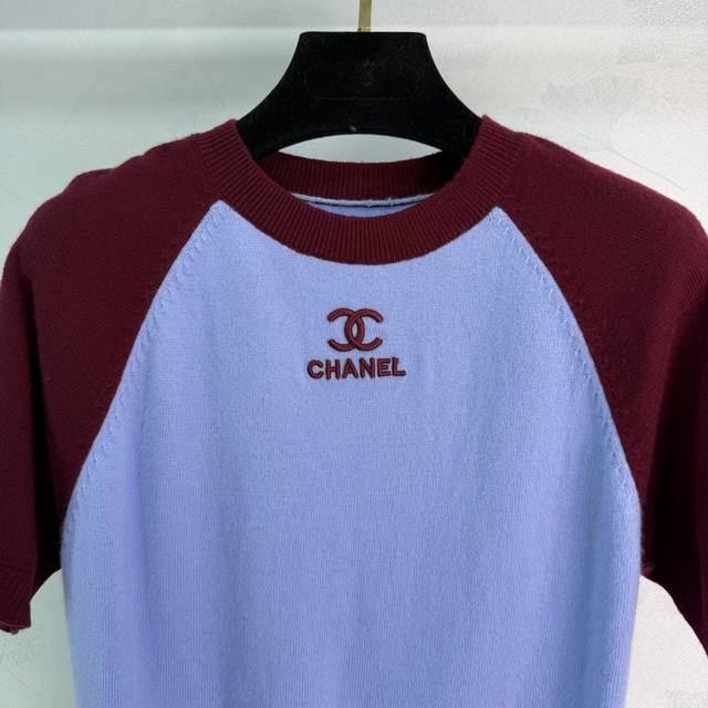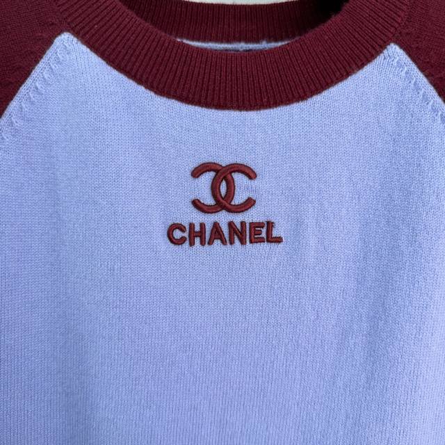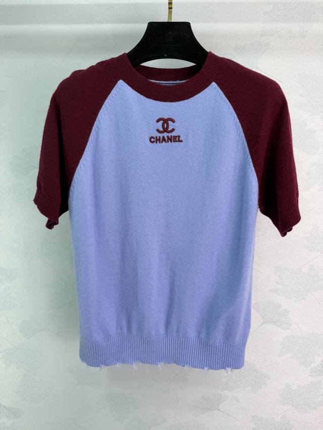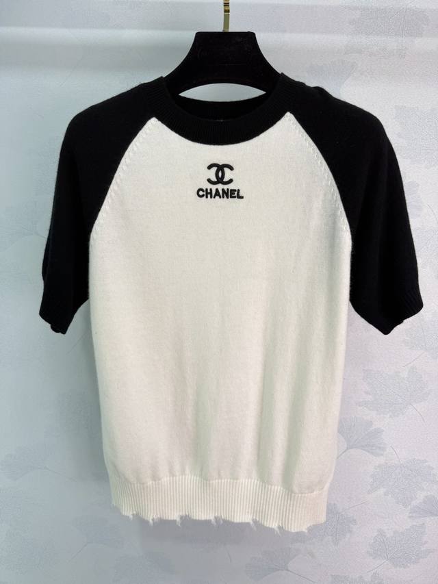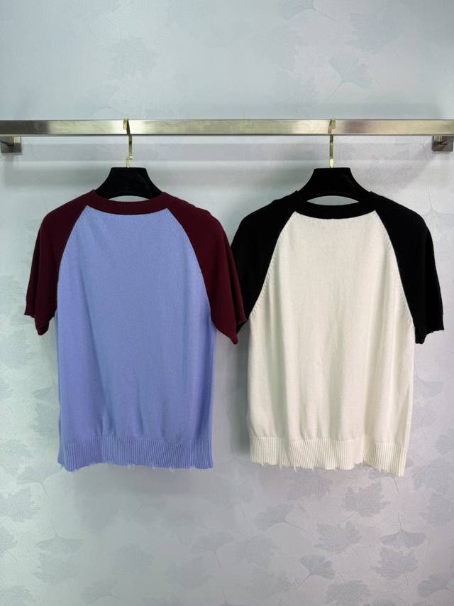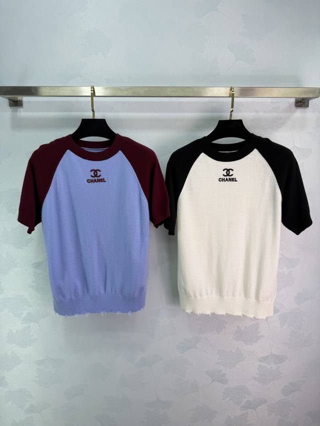 Ch*2026 Early Spring Collection Color-Blocked Raglan Knit Sweater, featuring a highly recognizable 3D embroidered logo on the chest. The frayed hem adds a touch of effortless chic. Available in 3 colors and sizes: S, M, L, T226B,